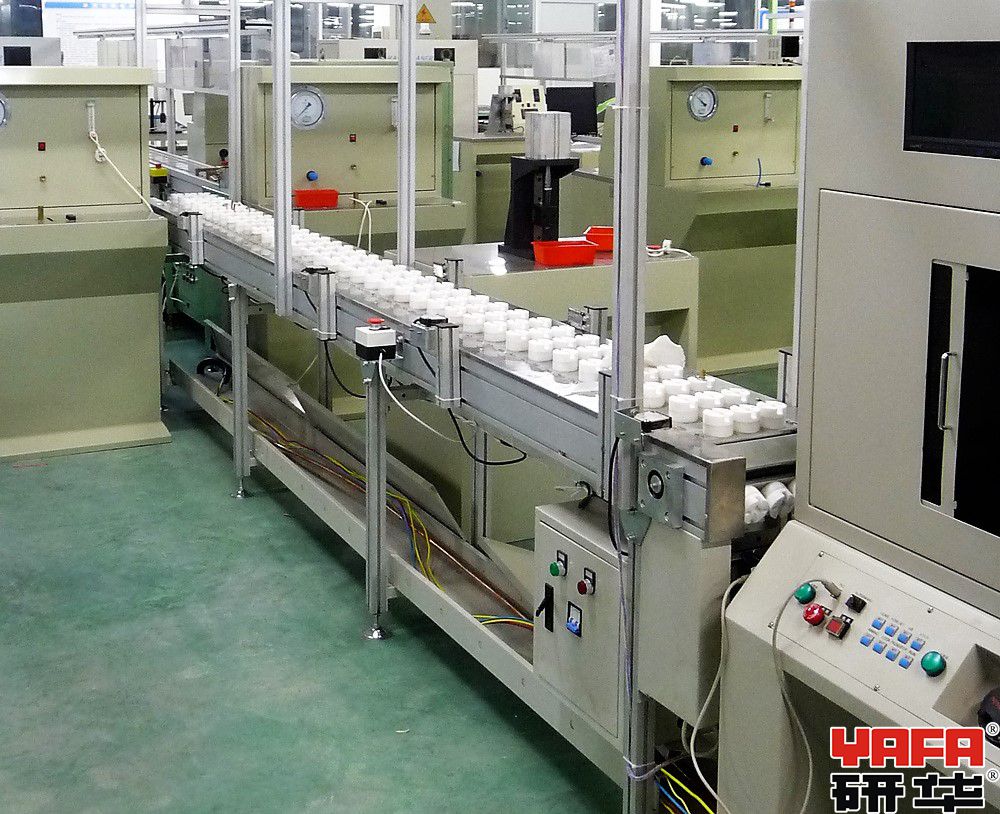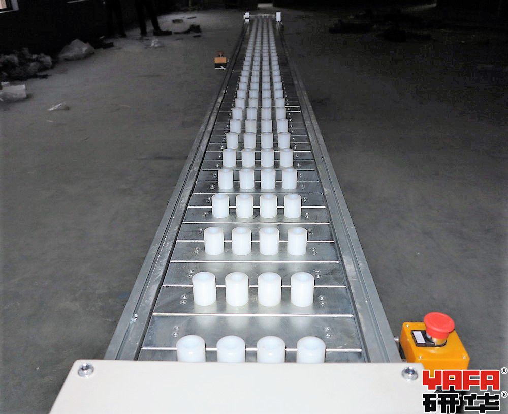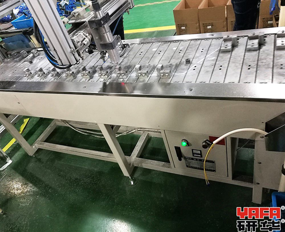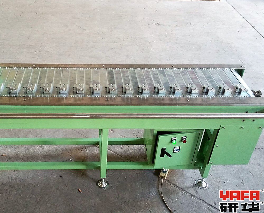 轻型板链输送机多用于输送轻载小工件,常用于一些需要在链板上固定小型工装胎具的短距离输送线,例如一些有防磕碰要求的小工件和喷码/激光打标专用输送线等。