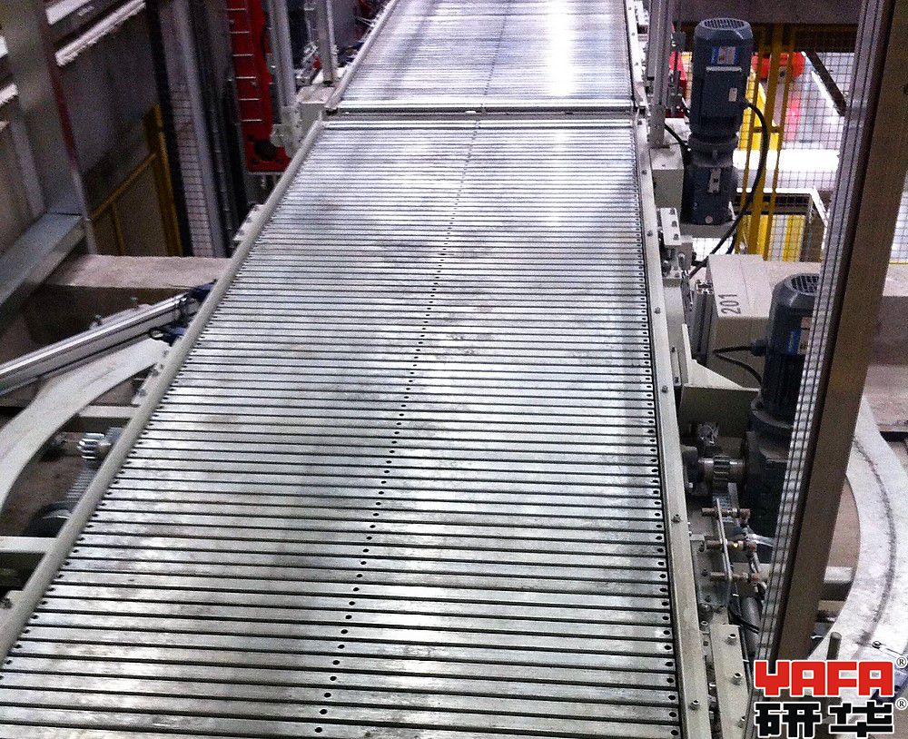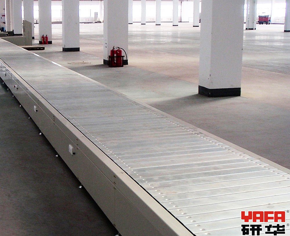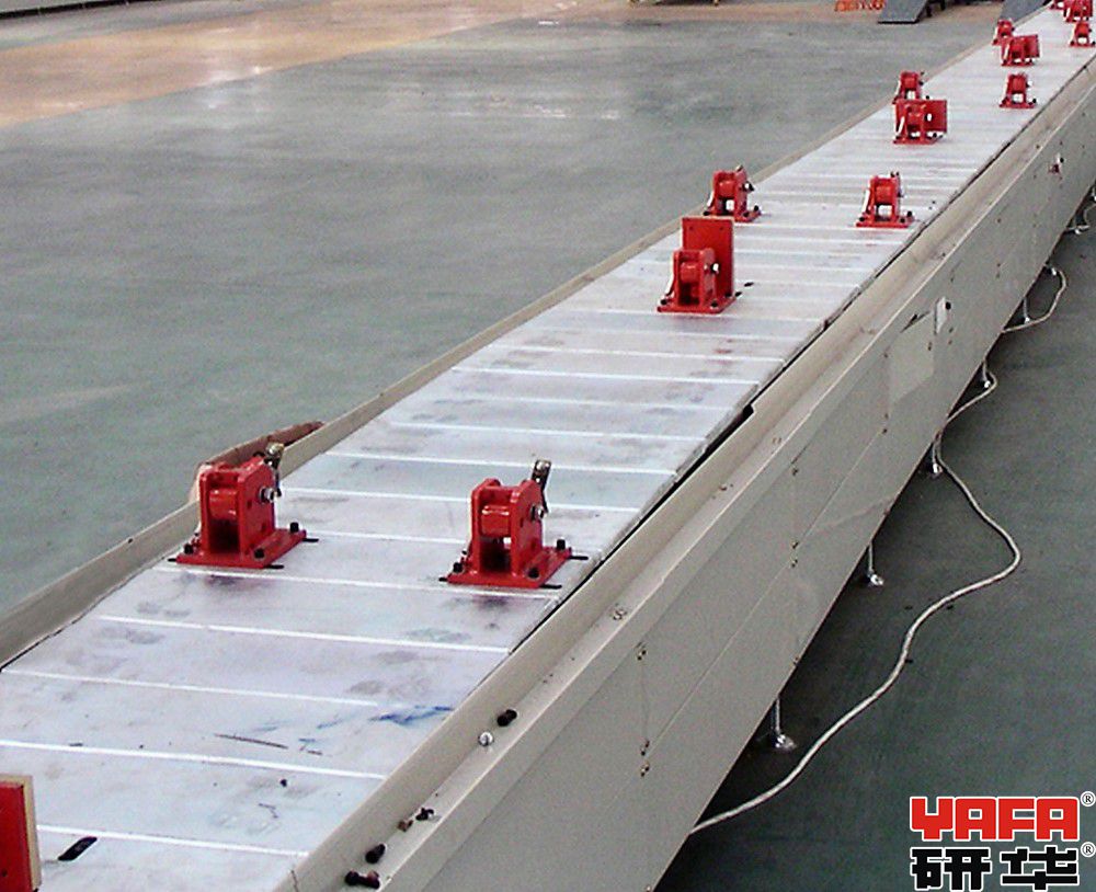 重型板链输送机多用于输送重载货物或大件工件,常用于汽车装配线、摩托车装配线、重型变速箱装配线、冰箱生产线等。