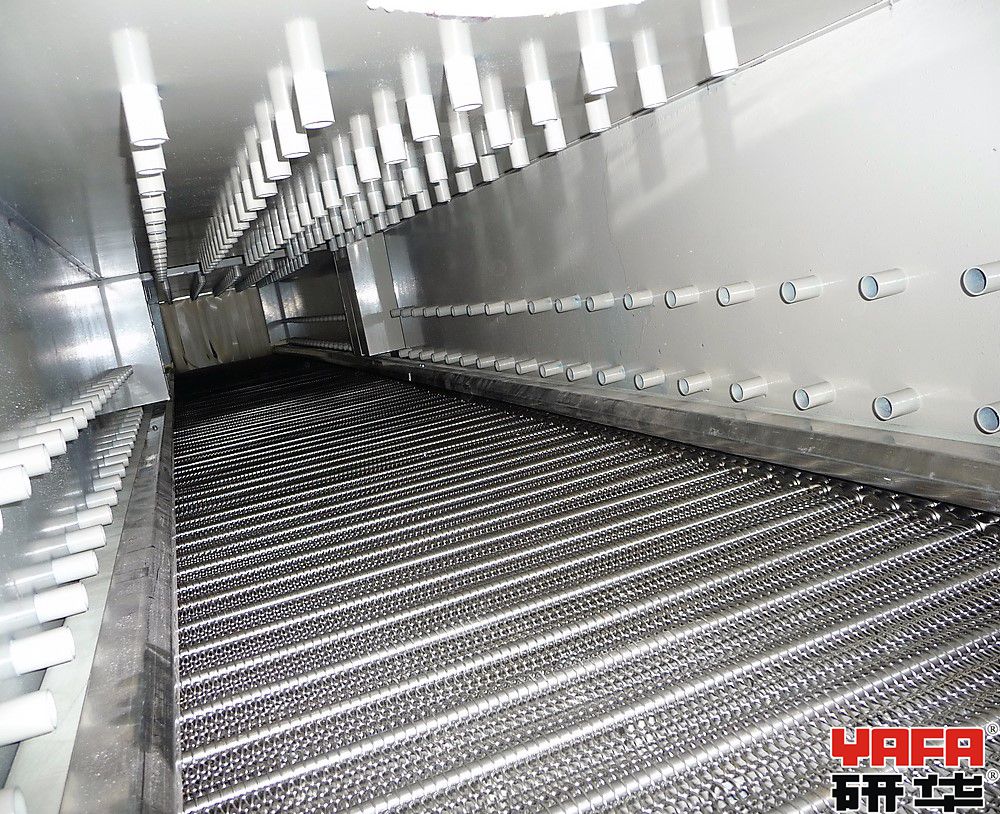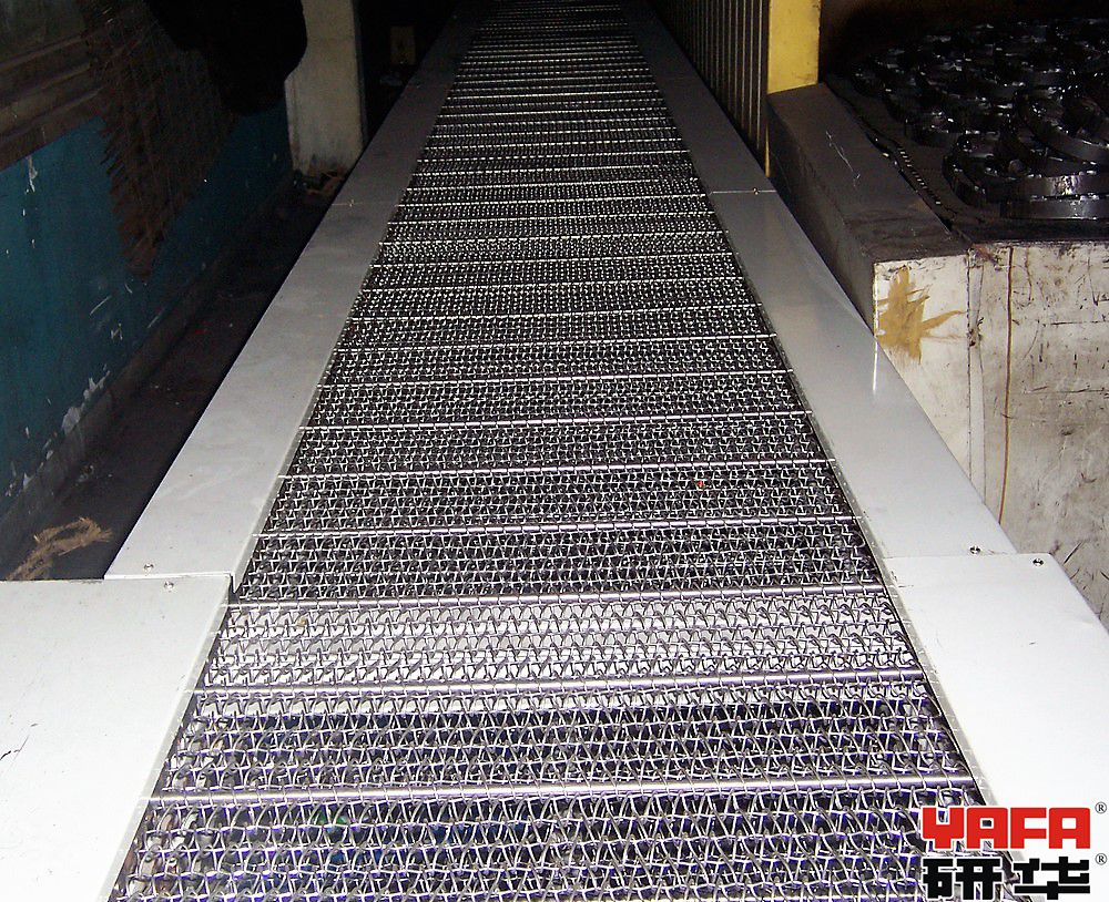 网带材料多为不锈钢网带或特氟龙,链条根据输送工艺不同,则有常规钢链和不锈钢2个大类选择。