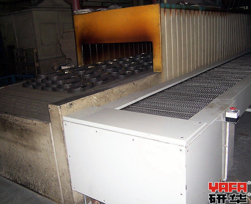 网带式的传动介质为不含链条的纯网带,传动方式类似于皮带输送机,依靠滚筒来传递驱动力。